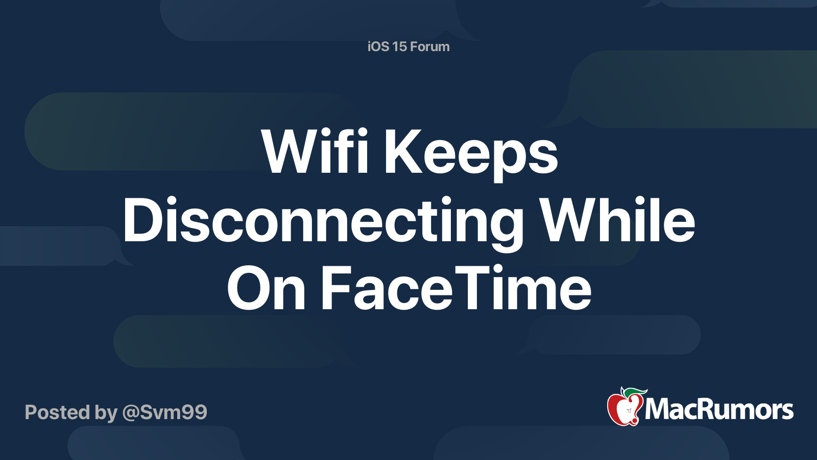 Wifi Keeps Disconnecting While On Facetime Macrumors Forums